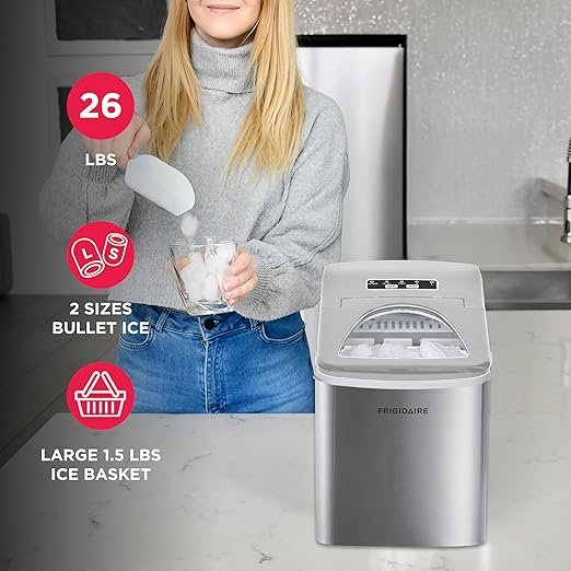 Always have fresh ice at your fingertips with the Frigidaire Countertop Compact Ice Maker. This portable stainless steel machine produces ice in just minutes, making it perfect for kitchens, offices, RVs, and parties. Its compact size saves counter space while delivering impressive ice-making capacity. Easy to operate and maintain, this reliable appliance is the ideal solution for anyone who enjoys cold drinks on demand—click to explore Frigidaire today.