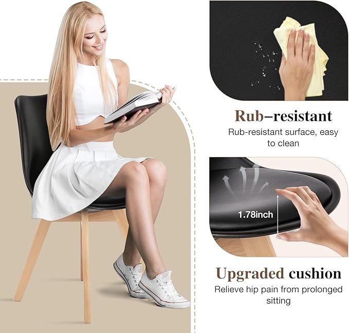 OLIXIS Kitchen Chair, Mid-Century Modern Style, Faux Leather Cushion, Solid Wood Legs