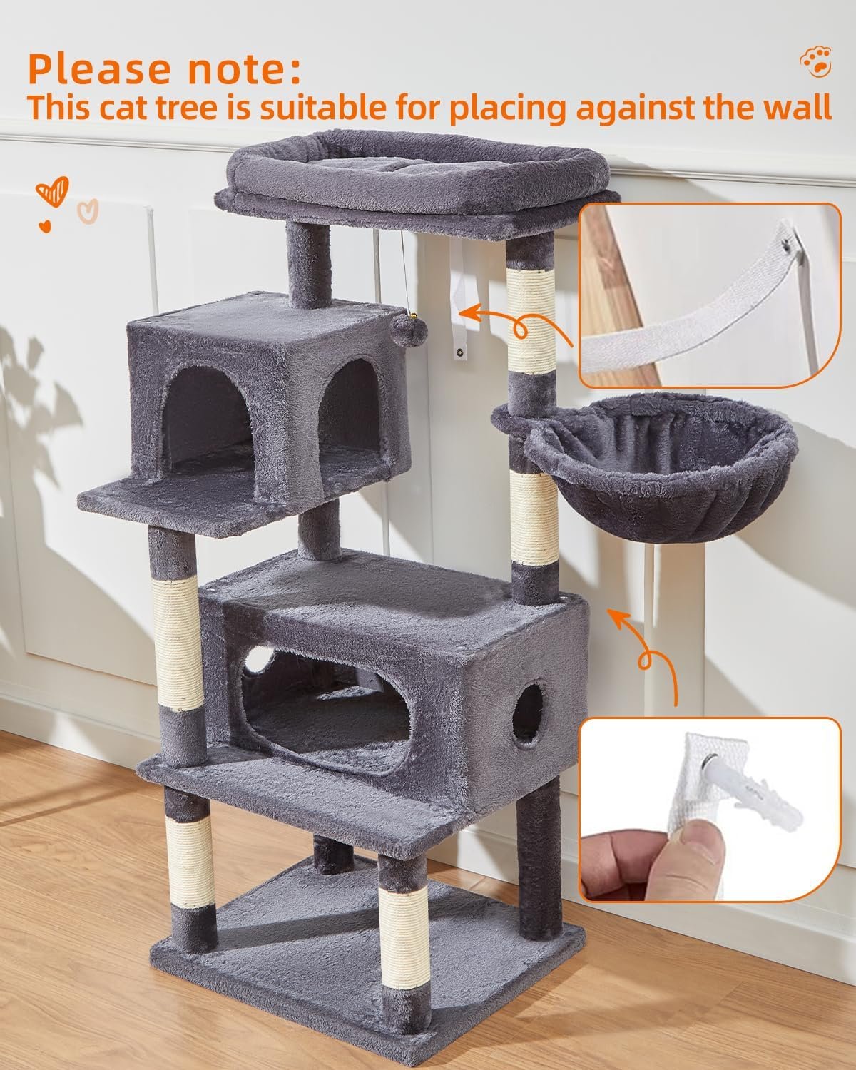 The Taoqimiao 48.8-Inch Cat Tree Tower is a luxurious multi-level cat condo designed to keep your furry friends entertained and comfortable. Featuring multiple scratching posts, cozy perches, a hammock, and climbing platforms, it provides endless fun and relaxation for cats of all ages. The sturdy construction ensures stability, while the adjustable design fits seamlessly into different room layouts. Perfect for exercise, play, and rest, this cat tower enhances both feline happiness and home décor.
