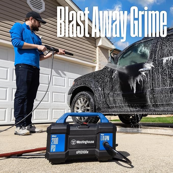 Tackle tough cleaning jobs with the Westinghouse ePX3100v Pressure Washer. Offering 3100 PSI of power and a 2.4 GPM flow rate, it easily removes dirt, grime, and stains from driveways, decks, and vehicles. The detachable pro-style cart ensures portability and compact storage, while multiple nozzle options provide flexibility for different surfaces. A durable and efficient solution for your cleaning needs—click now to explore Westinghouse performance.